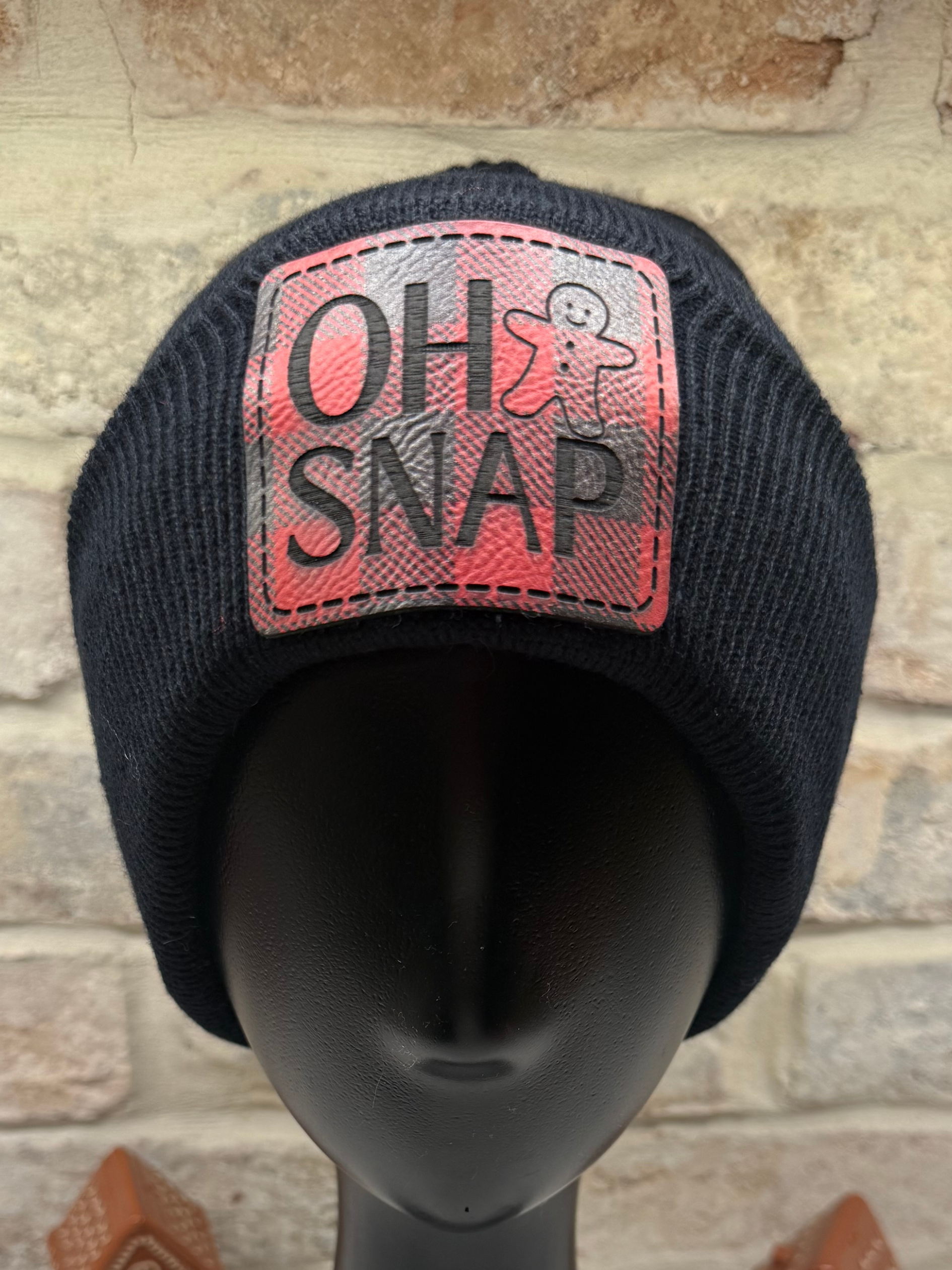 Black beanie with engraved leatherette patch.
